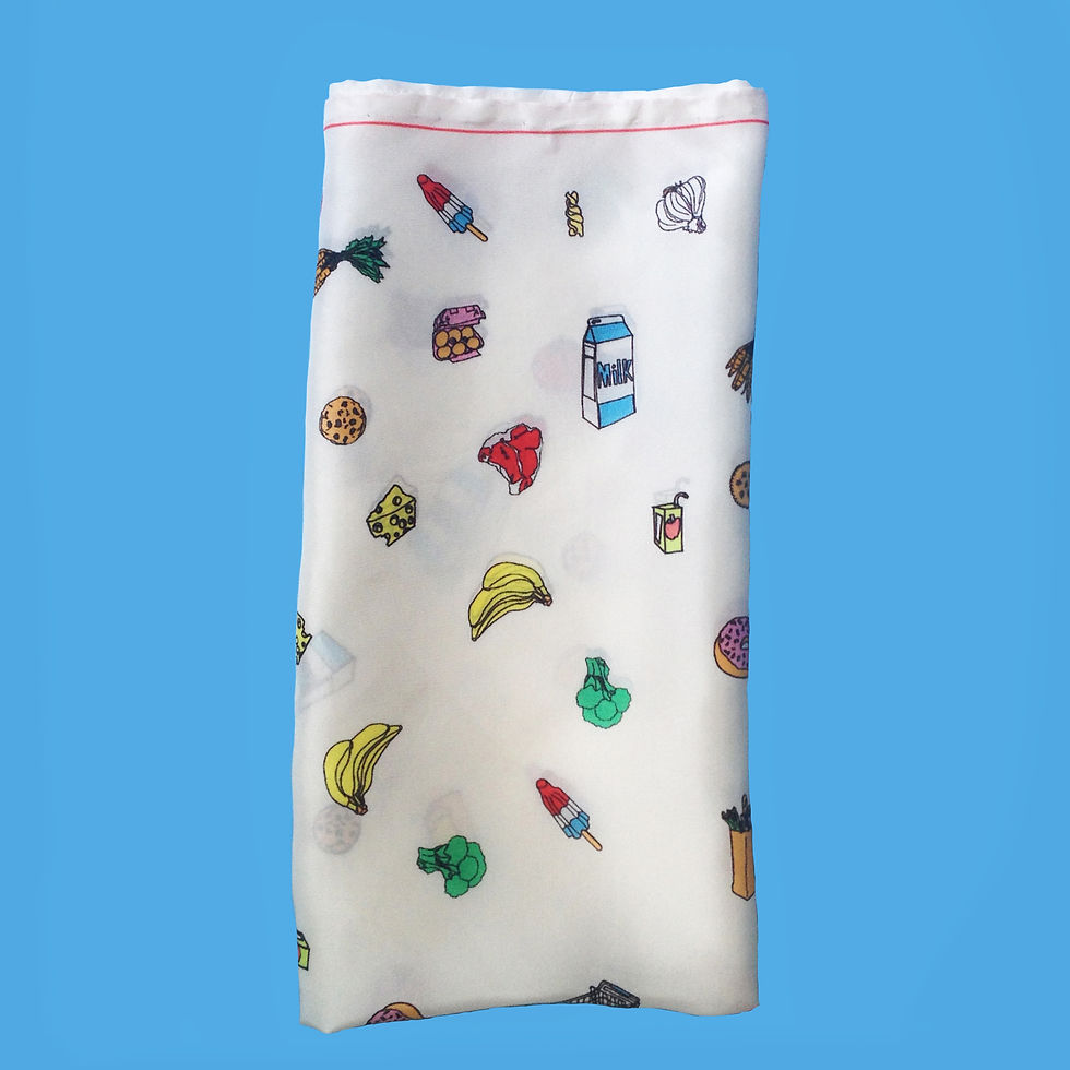 Organic silk scarves, featuring digitally printed original images by Blake and Zoe.